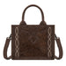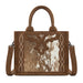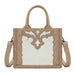 Make a bold western statement with this eye-catching mini tote. Featuring genuine hair-on cowhide on the front panel and a striking western applique design, this bag blends rustic charm with everyday functionality.