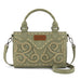 Add a touch of Western charm to your everyday look with this beautifully crafted Wrangler mini satchel. Designed with intricate embroidered swirl detailing and contrast whipstitch accents, this bag blends rustic character with modern functionality.